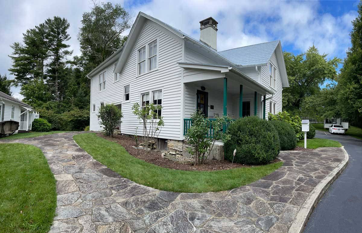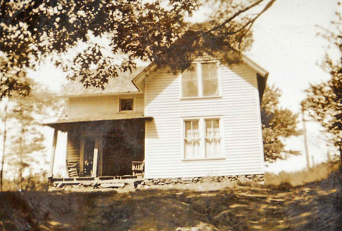 The interior woodwork of the house is a mixture of native woods: oak, chestnut, poplar, maple, and white and yellow pine. Found throughout are four-panel chestnut doors with pine surrounds and mortised with wooden pegs, showing moldings and door surrounds of chestnut and oak trim with white porcelain or glass knobs. The walls are made either of wood lath, brown and gray paper sheathing, and flower pattern wallpaper or chestnut or poplar beadboard. The floors throughout are mostly hardwood, tongue-and-groove oak and maple, but also yellow pine. The windows, complete with their sills, are made of pine. Most of the windows are two-over-two double-hung wood sash with braided cotton cord, pulley, and weight still intact.