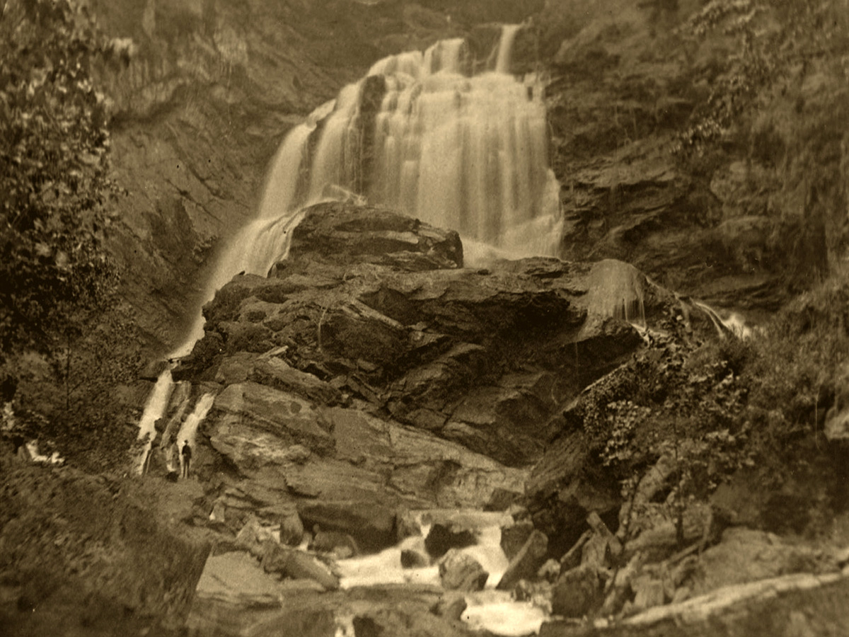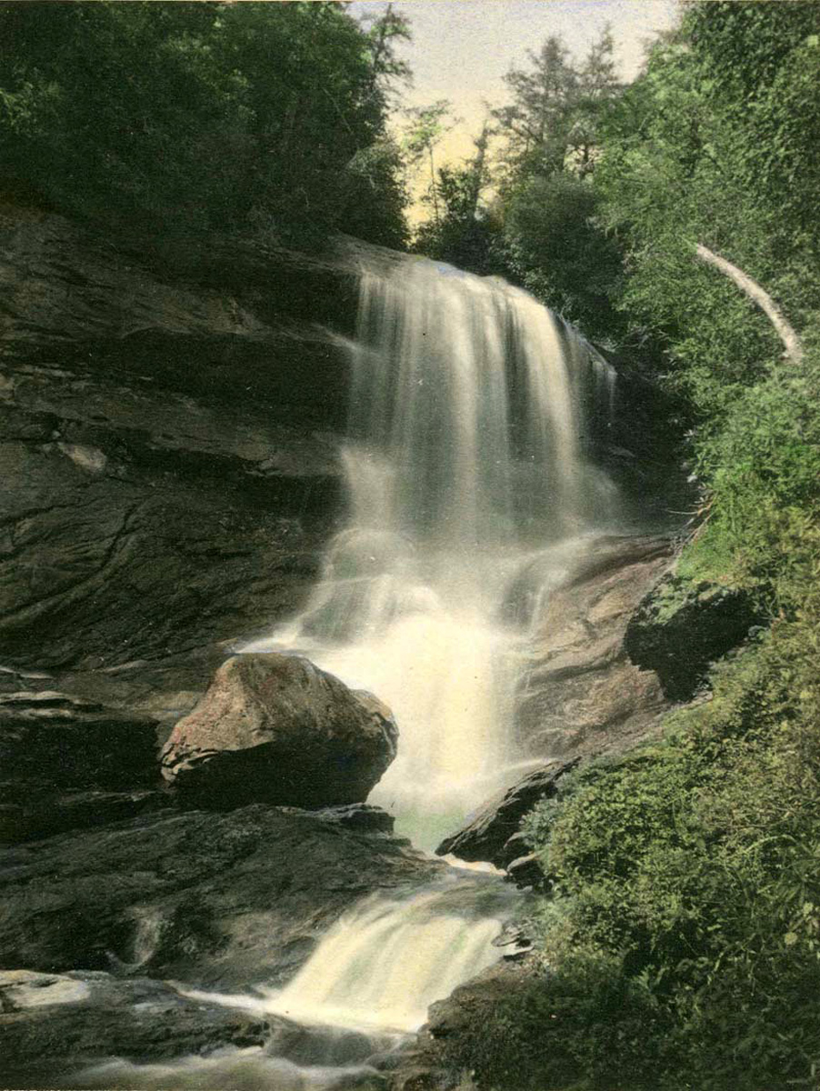 This hand-colored photo of Highlands Falls was made by photographer R. Henry Scadin in 1898. Once a short side trip from the Kelsey Trail, the Falls are today near the 16th hole of the Highlands Falls Country Club.