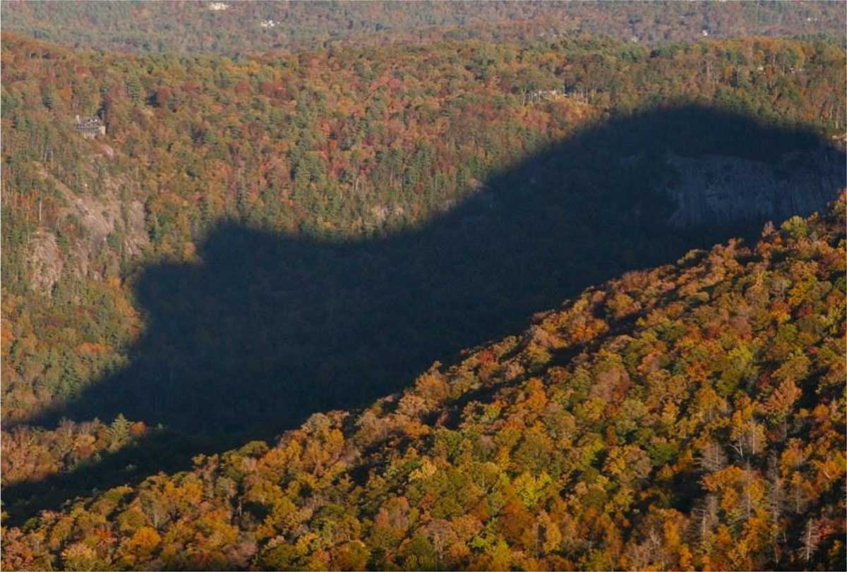 The iconic shadow cast on Whiteside Mountain. Photo courtesy of Ed Shearin.