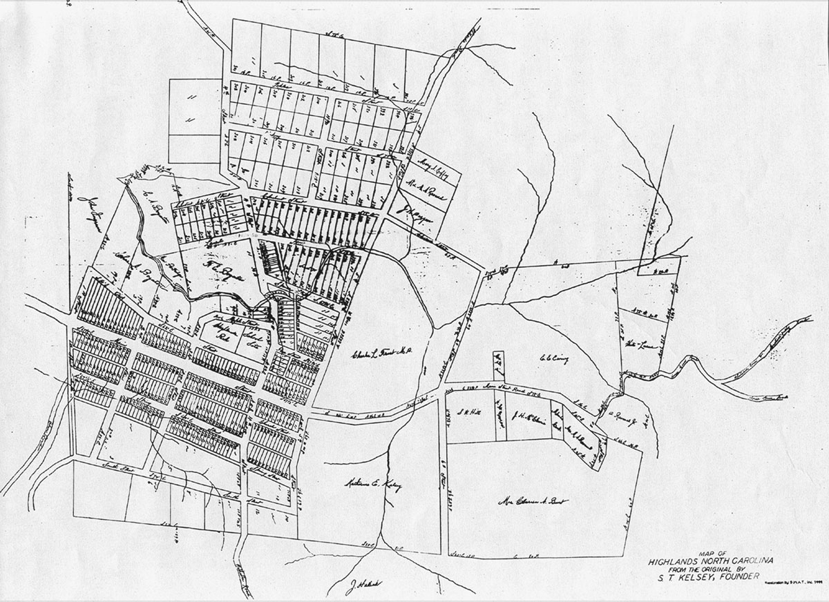 This map was made by the Town of Highlands from Kelsey's original in 1895. It shows all the streets and lots that still exist today and is reproduced in Chart form at the bottom of the Exhibit page for easy identification of the original owners and their deeds by lot number.